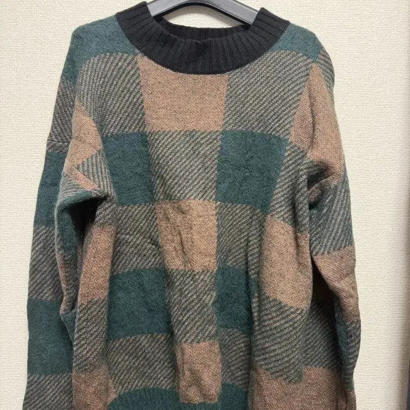 커다란 블록 체크 패턴이 특징적이며, 살짝 높게 설정된 넥라인도 특징적입니다.