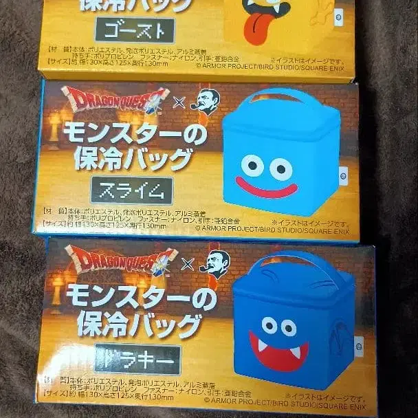 드래곤 퀘스트의 슬라임 디자인 보냉 백 3개 세트. - 캐릭터: 드래곤 퀘스트 - 아이템 타입: 보냉 백 - 디자인: 슬라임 - 수량: 3개 세트 낱개 판매 대응 가능합니다. 배송비 절감을 위해 상자는 포함되지 않습니다. 필요하신 분은 별도 대응해 드립니다. 방문해 주셔서 감사합니다.