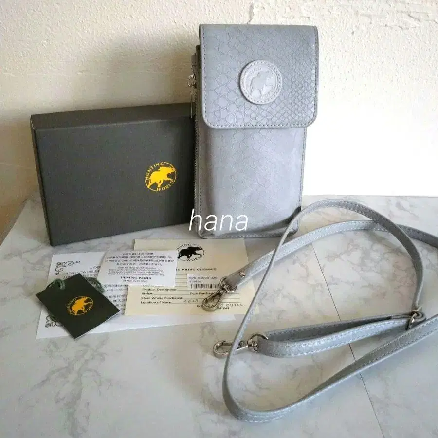 HUNTING WORLD 스마트폰 숄더 가죽 라이트 그레이 엠보