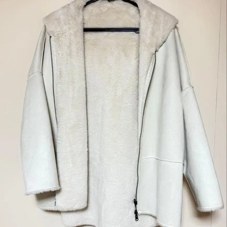 슈소넷 후드 부착 베이지 무스탕 코트