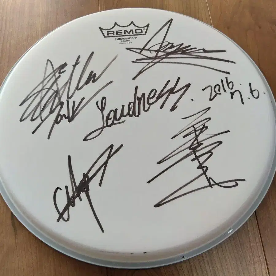 사인 포함 REMO 오리지널 드럼 헤드.