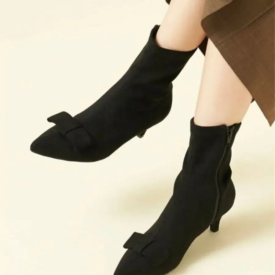 어퍼의 리본이 페미닌한 인상의 숏부츠