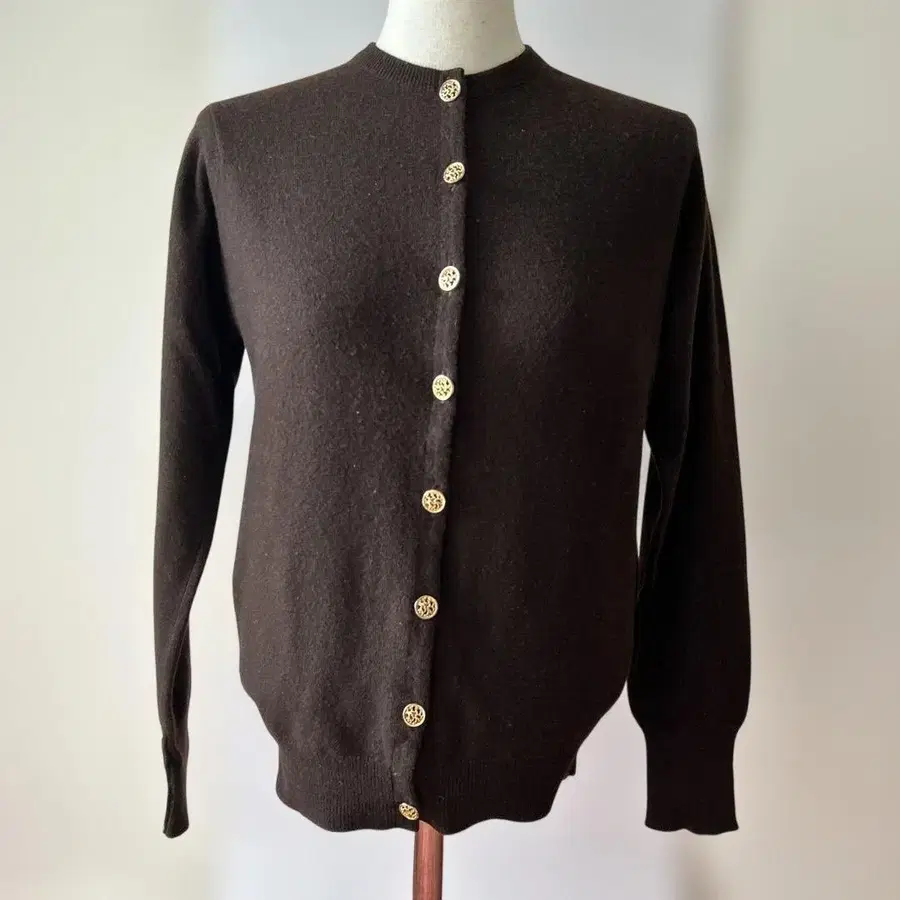 100% 퓨어 캐시미어 다크 브라운 긴팔 가디건.