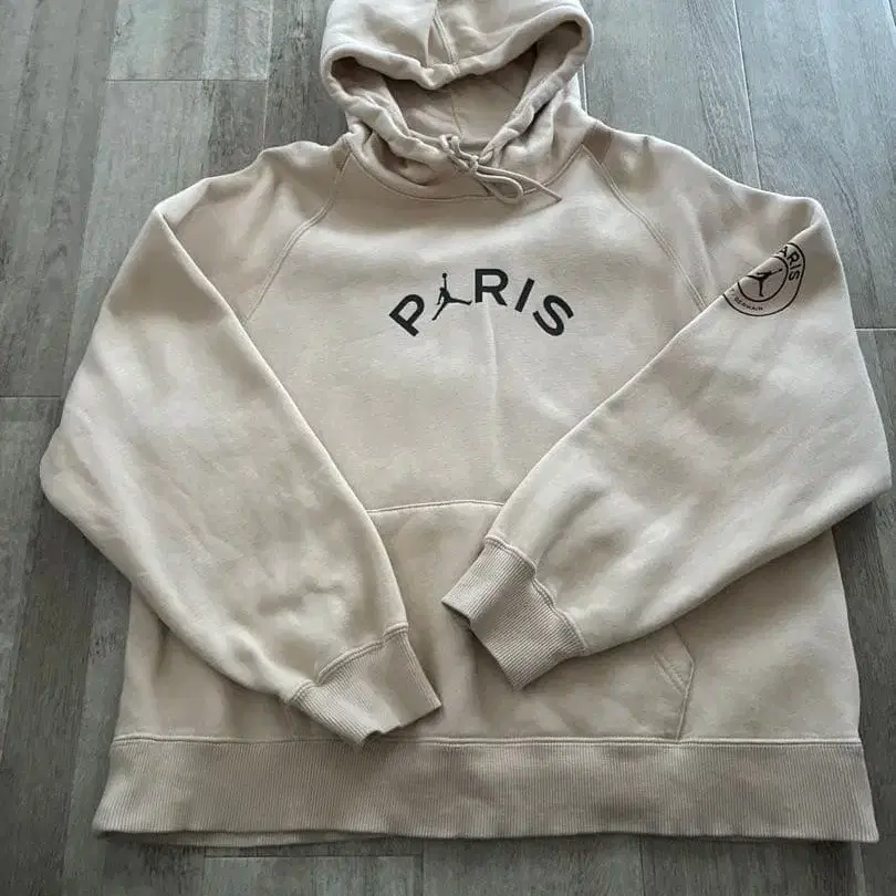 PARIS 로고 후드티 베이지 후드 부착