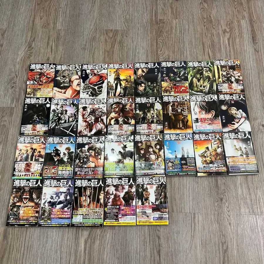 전 29권 진격의 거인 시리즈, 양호한 상태로 제공.