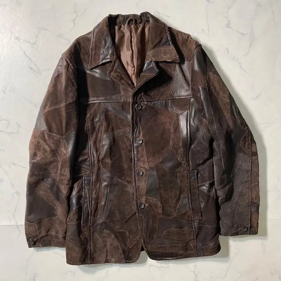 [ 새상품급 ] 테일러드 자켓 덧댐 패치워크 가죽 자켓 램 가죽(양가죽) 스웨이드 TLE-2529 4버튼(4b) 본절단