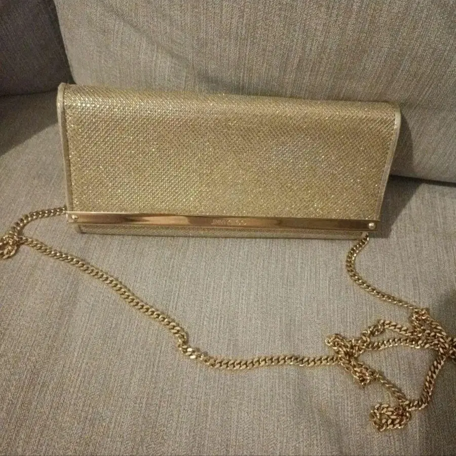 골드 클러치백입니다. 지퍼 포켓과 골드 체인이 달려 있어 파티에 최적입니다. - 색상: 골드 - 디자인: 클러치백 - 내부 구조: 지퍼 포켓 있음 - 체인: 골드 체인 포함 가로 21.8cm x 세로 11cm, 폭은 약 2.4cm 정도입니다. 사용감은 사진으로 확인 부탁드립니다. 방문해 주셔서 감사합니다.