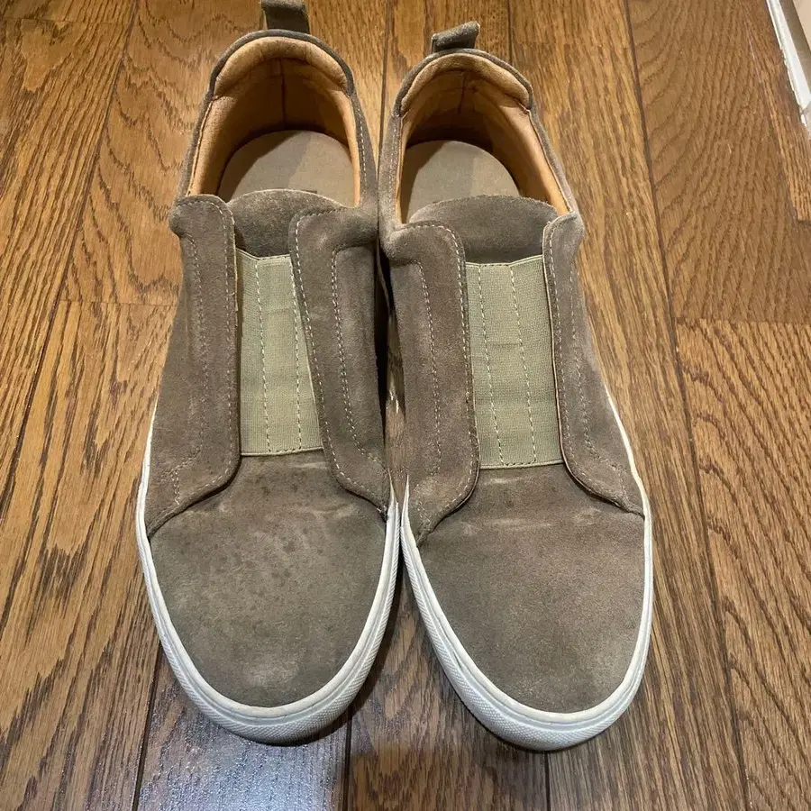 자동 번역되었어요. 원문보기스웨이드 소재의 브라운 슬립온 스니커즈, BEAMS 제품.