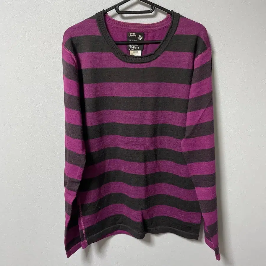PPFM 신의 의류 L 사이즈 블랙 핑크 스트라이프 U넥 스웨터