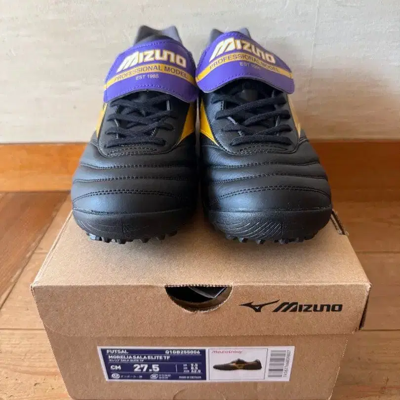 - 브랜드: Mizuno - 모델명: 모렐리아 - 사이즈: 27.5cm - 색상: 블랙/골드/퍼플 - 타입: 풋살화 방문해 주셔서 감사합니다.