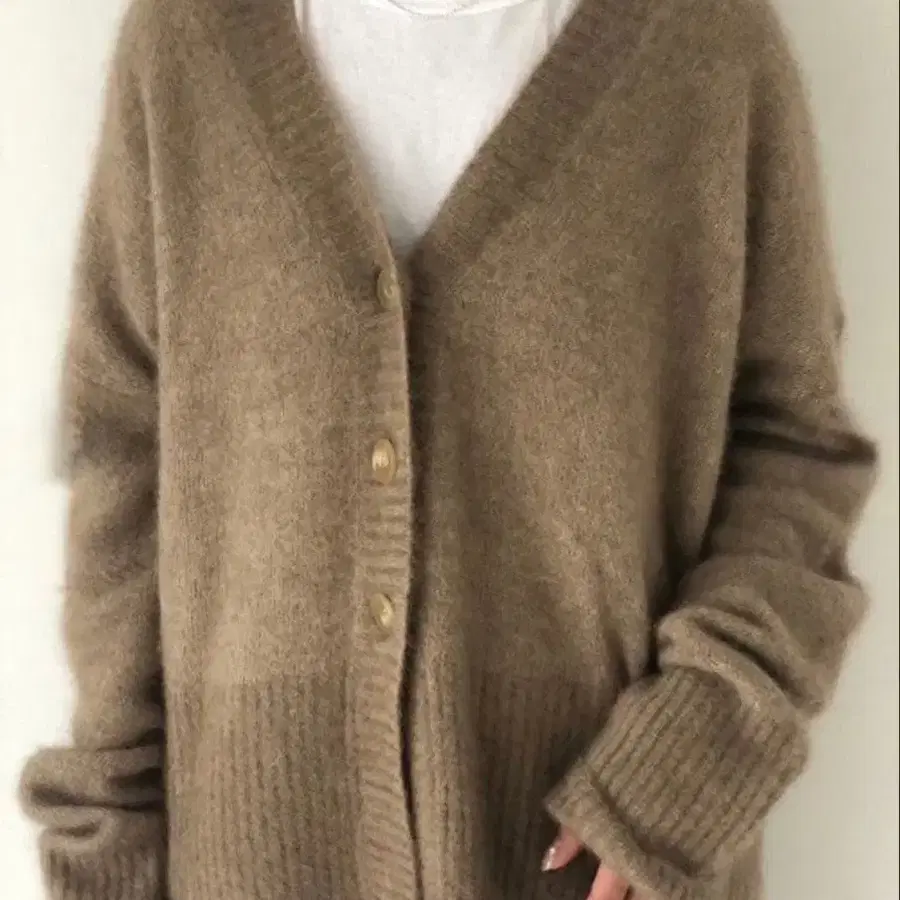 푹신한 라쿤 실로 촉감이 뛰어난 니트 가디건.