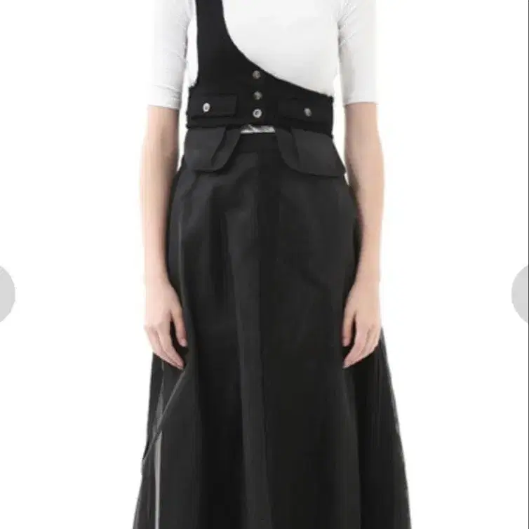 원숄더 상의 + 플레어 스커트 세트. 두 가지를 함께 착용하면 원숄더 오버롤 스커트 같은 느낌으로 연출할 수 있습니다.