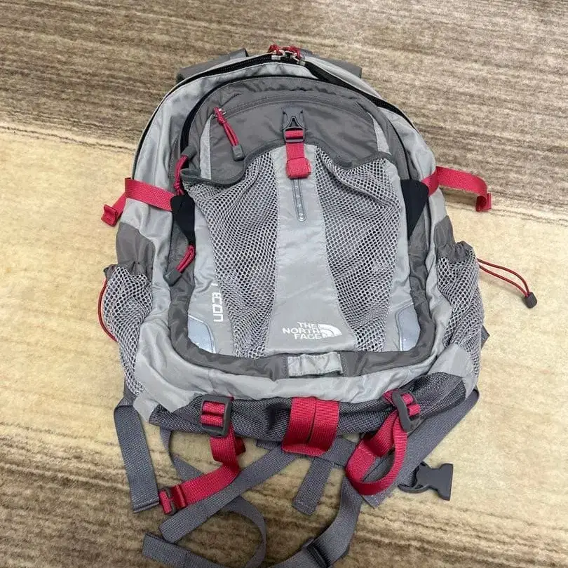 메쉬 포켓과 조정 가능한 스트랩이 있는 THE NORTH FACE 중형 백팩.