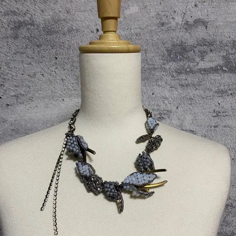 타타볼레로 TATABORELLO 비즈 목걸이 보타니컬 모티브 사이즈, 전체 길이 48 컬러, 그레이, 화이트 품질 표시, 없음 다양한 형태의 비즈 부품을 토핑한 앤티크 느낌의 중후한 디자인이 임팩트 있는 목걸이입니다. 금장 장식은 마그넷으로 쉽게 입고 벗을 수 있습니다. 다른 곳에서는 구하기 어려운 수입품 특유의 특별함이 성인 여성의 마음을 만족시켜 줍니다. 중고품이므로 예민하신 분의 구매는 삼가해 주세요. 구매 전에 프로필란 열람을 부탁드립니다. 다른 상품도 판매 중이니 함께 검토해 주시면 감사하겠습니다.