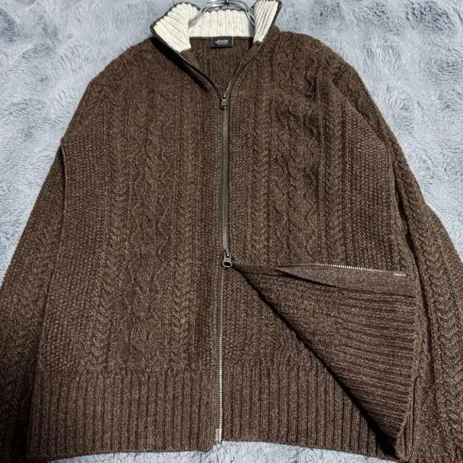 D'URBAN 브라운 울 드라이버즈 니트 집업 S 상당 케이블 더반
