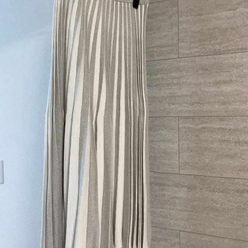 drawer의 플리츠 스커트입니다. 한여름을 제외한 계절에 사용할 수 있는 소재입니다. 사진에 보이는 것처럼 2곳에 얼룩이 있습니다. 플리츠로 가려지지만, 이해해주시는 분 부탁드립니다.