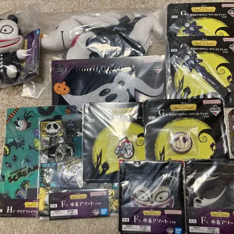 나이트메어 비포 크리스마스 제일복권 세트입니다. 사진의 12점 모두 드립니다. 미개봉 새상품입니다. E상 안에 무엇이 들어있는지는 모릅니다. B상 C상 D상 E상 각 1점 F상 3점 G상 4점 H상 1점
