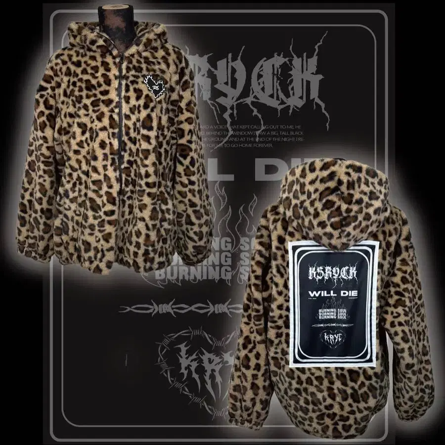 DIG DEEP 레오파드 무늬 후드 부착 집업 후드티 안쪽 보아