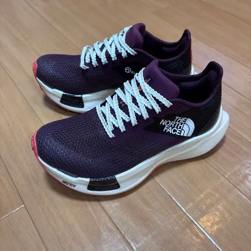 자동 번역되었어요. 원문보기트레일 러닝에 최적인 서밋 시리즈 신발, 퍼플과 블랙의 콤비네이션.