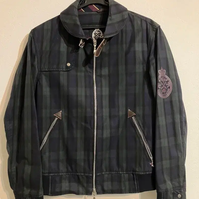 체크 무늬에 엠블럼이 달린 캐주얼 자켓. - 색상: 체크 무늬 - 디자인: 지퍼 부착, 카라 부착, 포켓 있음 - 장식: 엠블럼 부착 - 스타일: 캐주얼 - 소매: 긴팔 방문해 주셔서 감사합니다.