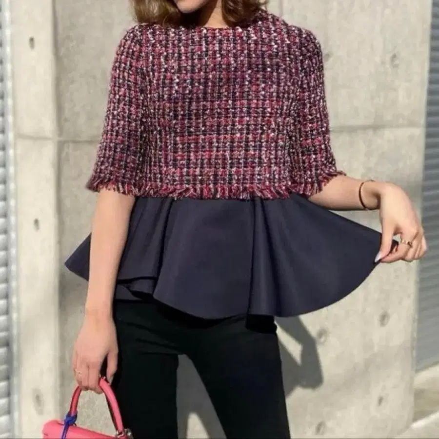 빨간색과 블랙 트위드로 만들어진 페플럼 스타일의 반팔 상의. 2회 착용만 했습니다 ♪ - 색상: 빨간색과 블랙 트위드 - 디자인: 페플럼 스타일 - 소매 길이: 반팔 - 소재: 트위드와 천의 콤비네이션 방문해 주셔서 감사합니다.