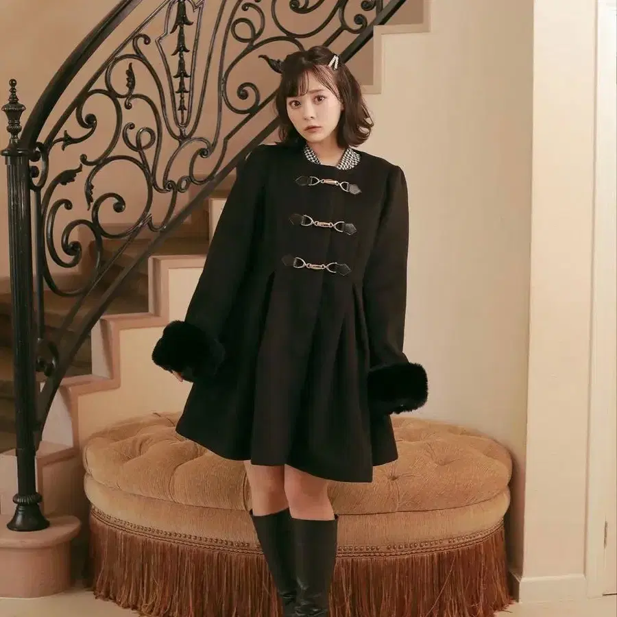 새상품급 evelyn 에블린 비트 플레어 코트 소매 퍼 M
