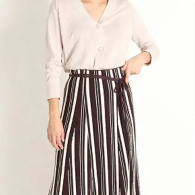멀티 컬러로 플리츠처럼 보이는 디자인의 니트 스커트입니다.