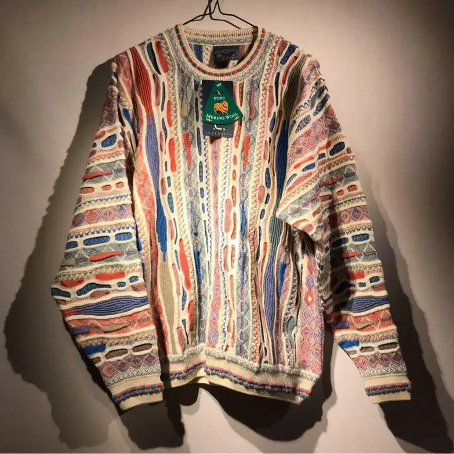 인기 있는 coogi 쿠지와 동일한 생산지인 호주산 geccu ゲック 3D 니트 멀티 컬러 니트입니다.