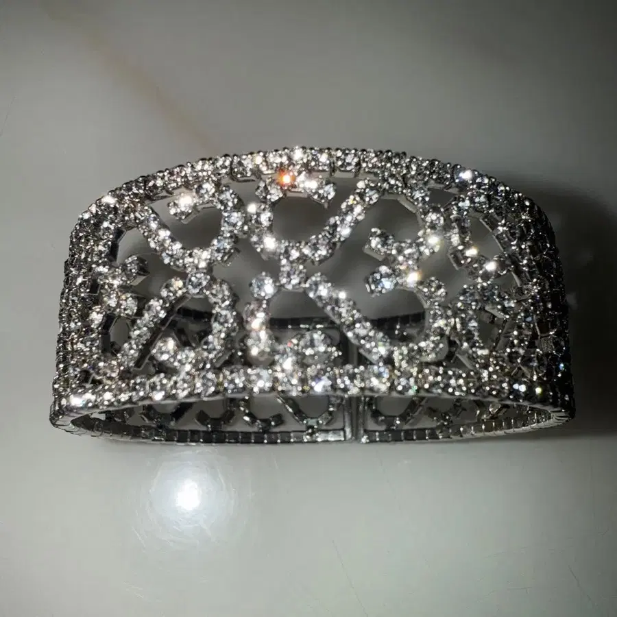 실버 오픈 뱅글에 크리스탈 장식이 더해진 엘레강트한 디자인. - 디자인: 장식적인 컷 아웃 디자인과 크리스탈 장식 - 소재: 메탈 소재 - 모양: 오픈 뱅글 스타일 - 색상: 실버 - 장식: 크리스탈 장식이 더해짐 방문해 주셔서 감사합니다.