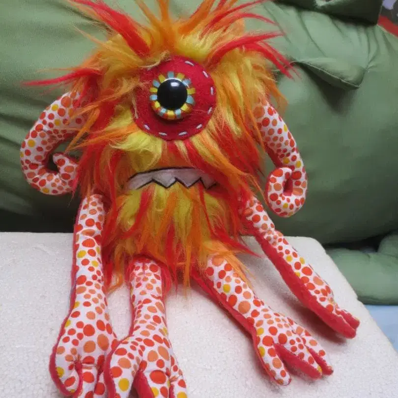 미국인 또는 영국인 작가님의 핸드메이드 봉제 인형 *외눈 몬스터 약 25cm. 빨간색과 오렌지색의 예쁘고 귀여운 몬스터입니다. 미사용 보관품. 25cm-3 MONSTER PLUSH 몬스터 봉제 인형 외눈 하나의 눈