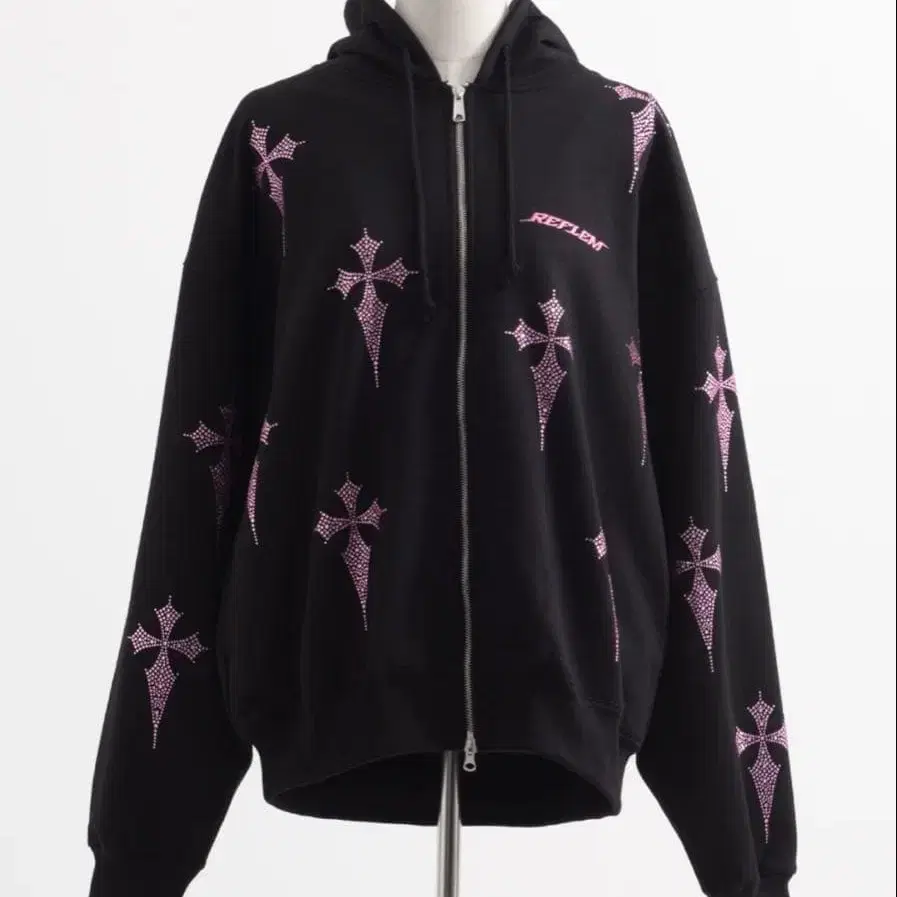 [ REFLEM ] 크로스 올 패턴 큐빅 ZIP 후드티/블랙 x 핑크