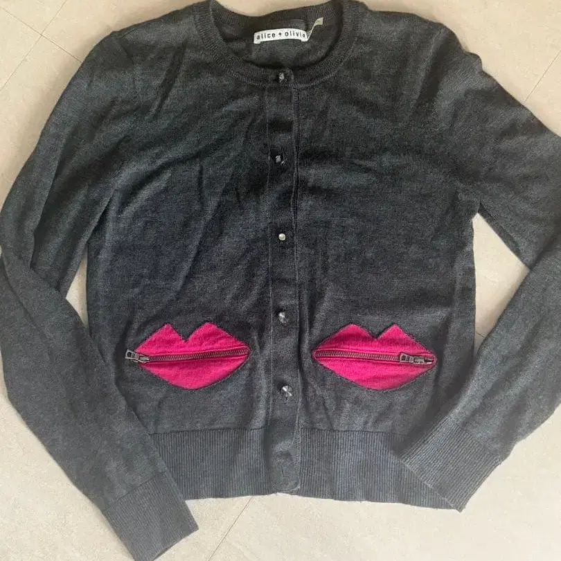 새상품 완판템 프레이 아이디 펄 트리밍 칼라 어태치드 가디건