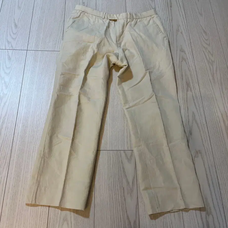 [ 브랜드 ] TOMORROWLAND [ 사이즈 ] 50 허리: 42.5 (평평하게 놓음) 밑위: 약 30cm 인심: 약 68cm 밑단 폭: 약 22cm 허벅지 폭: 약 32cm ※ 평평하게 놓은 상태에서 개인 측정했으므로 약간의 오차는 양해 부탁드립니다. [ 색상 ] 베이지 90년대경의 린넨 블렌드 슬랙스입니다. 군데군데 체인 스티치로 봉제되어 있으며, 빈티지한 분위기이면서도 깔끔한 실루엣입니다. 검토해 주세요.