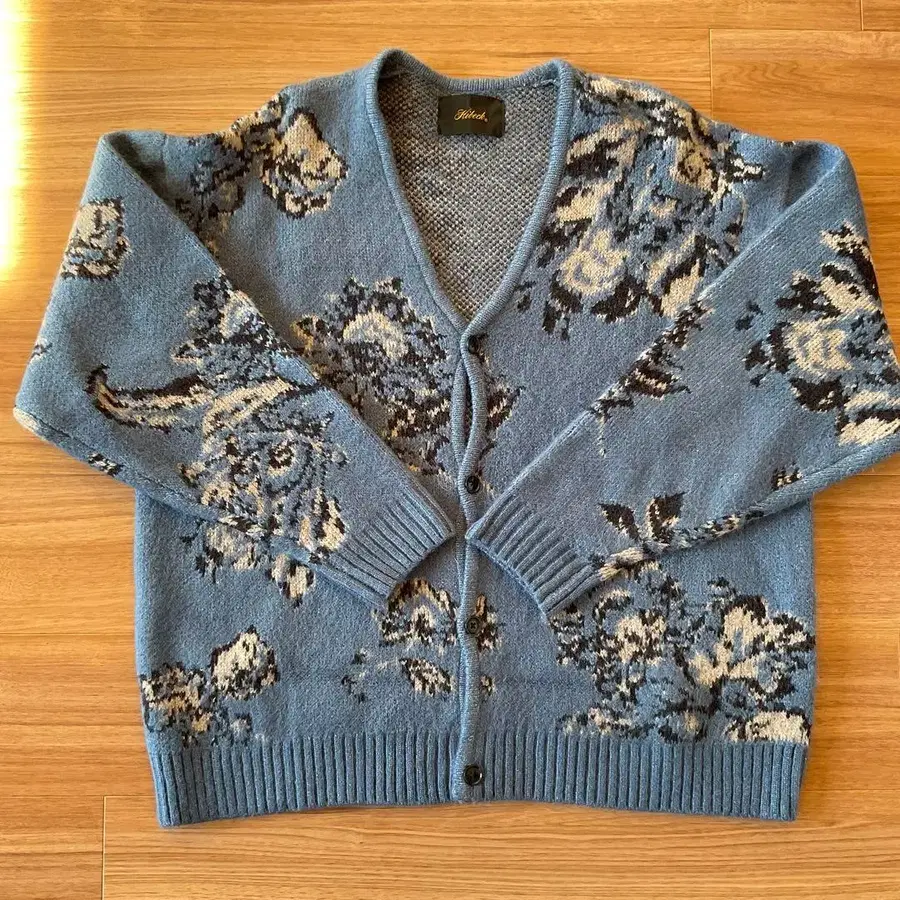 - 색상: 블루 - 디자인: 꽃무늬 - 소재: 울 혼방 - 스타일: 가디건 - 버튼: 프론트 오픈 버튼식 소매 길이: 58cm 어깨 너비: 66cm 가슴 너비: 65cm 기장: 69cm #가디건 #스웨터 #겨울 의류 #모헤어