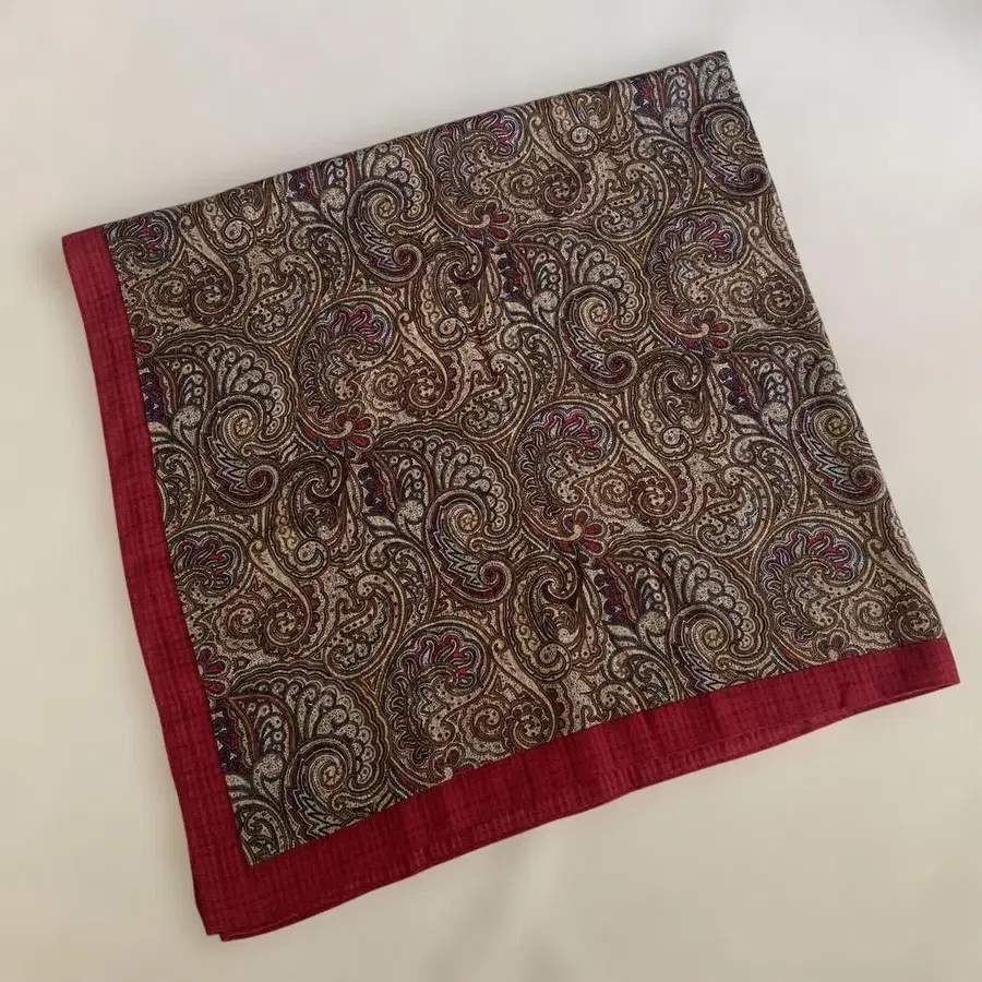 미사용 대형 스톨 스카프 페이즐리 패턴 레드 실크 30%