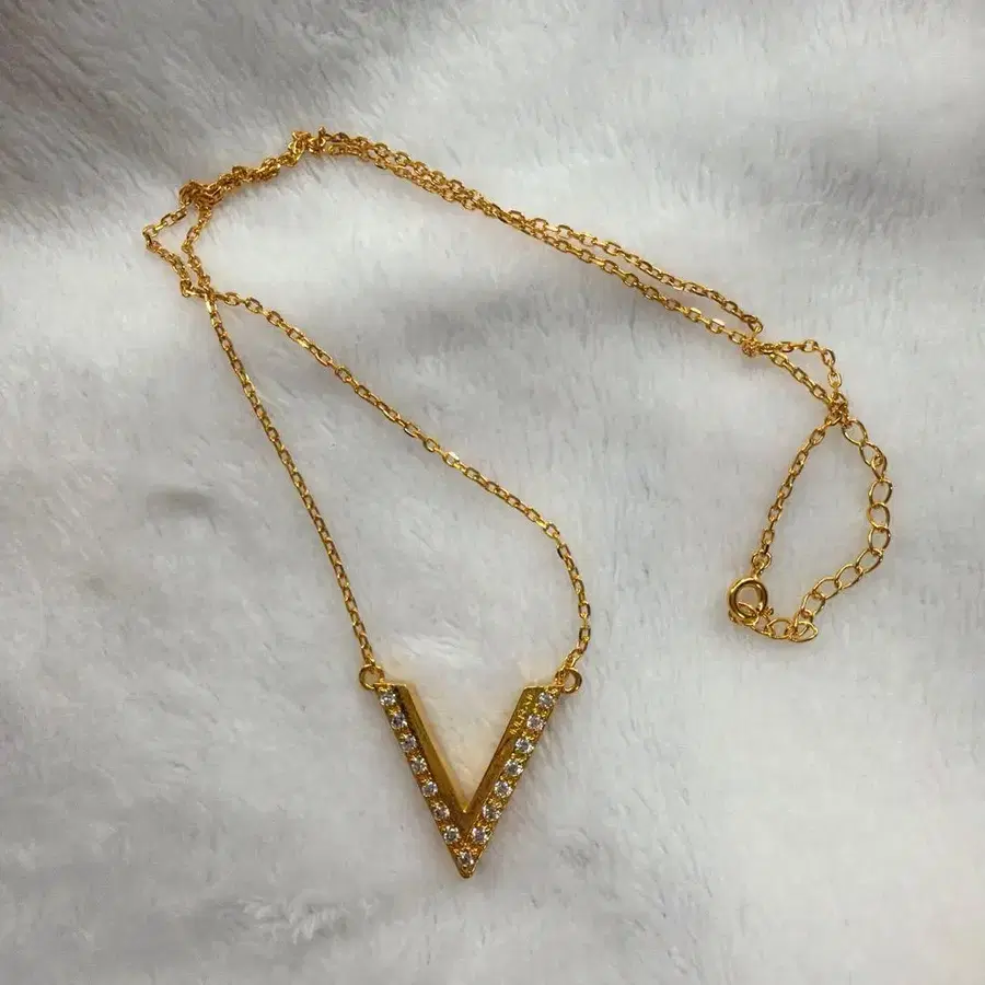 V자형 크리스탈 장식 목걸이, 골드 컬러 도금 마감. 아이리 비치 IRIEBEACH 하와이안 주얼리 - 디자인: V자형 펜던트 - 소재: 골드 컬러 도금 - 장식: 크리스탈 스톤 - 체인 스타일: 얇은 링크 체인 - 길이 조정: 조정 가능한 체인 20~24cm 방문해 주셔서 감사합니다.