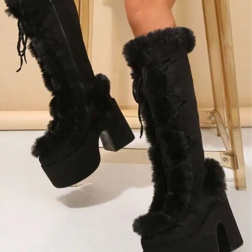 퍼가 달린 플랫폼 롱 부츠, 스타일리시하고 쾌적한 디자인.