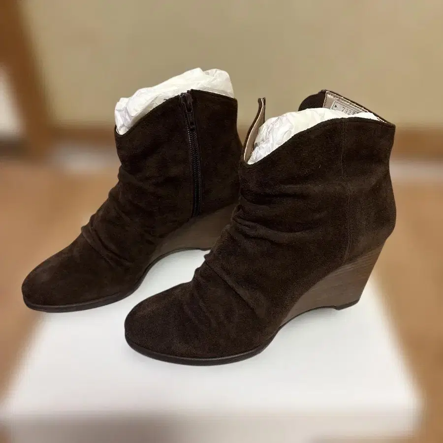 박스 포함 새상품 숏부츠 M 웨지힐 스웨이드 브라운 사이드지퍼