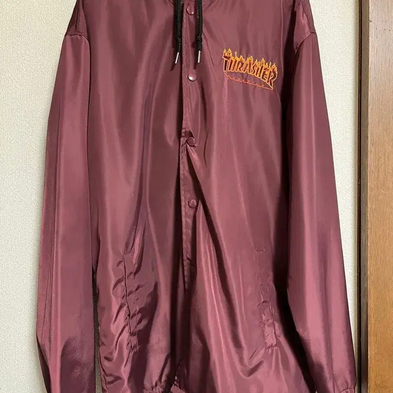 버건디 색상의 THRASHER 자수 로고 나일론 자켓, L 사이즈. - 브랜드: THRASHER - 색상: 버건디 - 디자인: 자수 로고 - 사이즈: L 방문해 주셔서 감사합니다.
