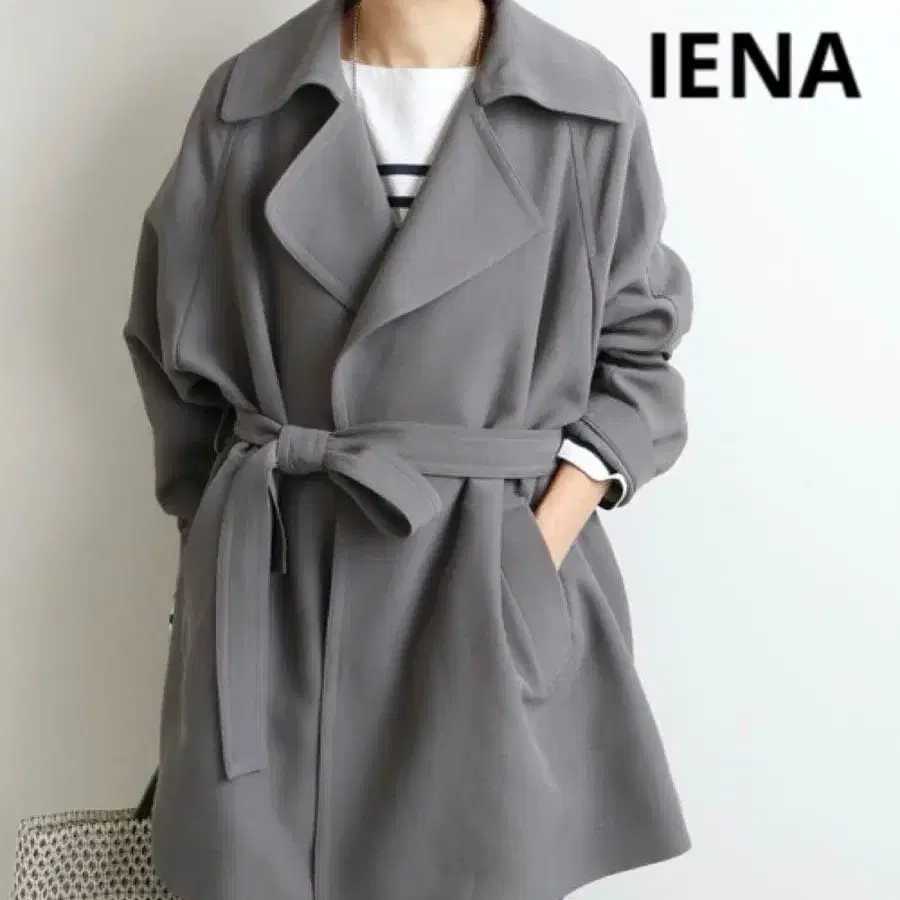 새상품급 IENA 아세테이트 코튼 숏코트 그레이 벨트 케이프 38