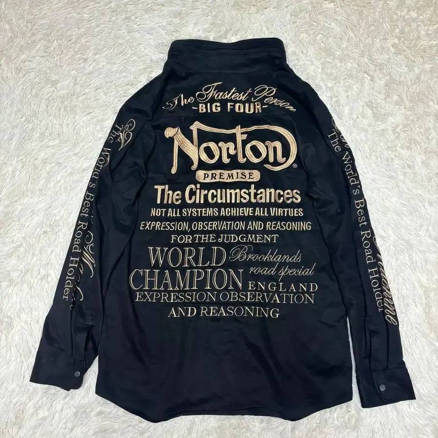 Norton 골드 자수 긴팔 셔츠 블랙 XXL 후드