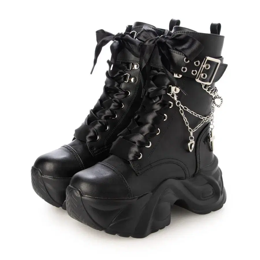 YOSUKE 요스케 통굽 레이스업 부츠 블랙 벨트 L