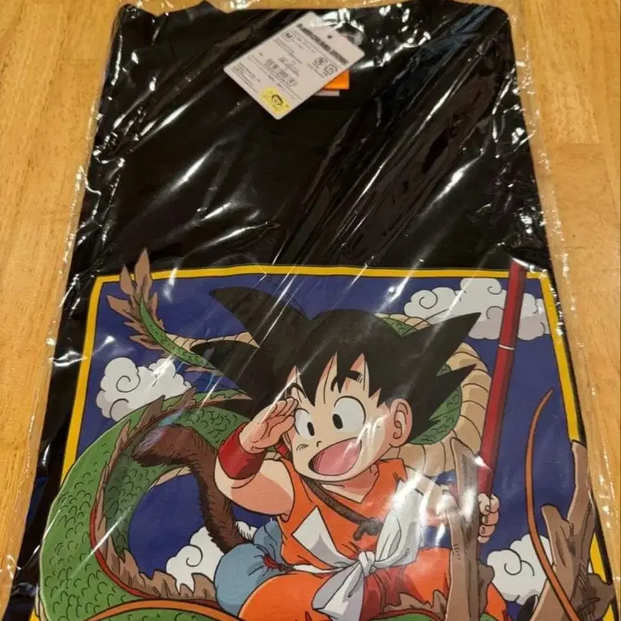 드래곤볼의 손오공이 디자인된 블랙 색상의 T셔츠, M 사이즈.