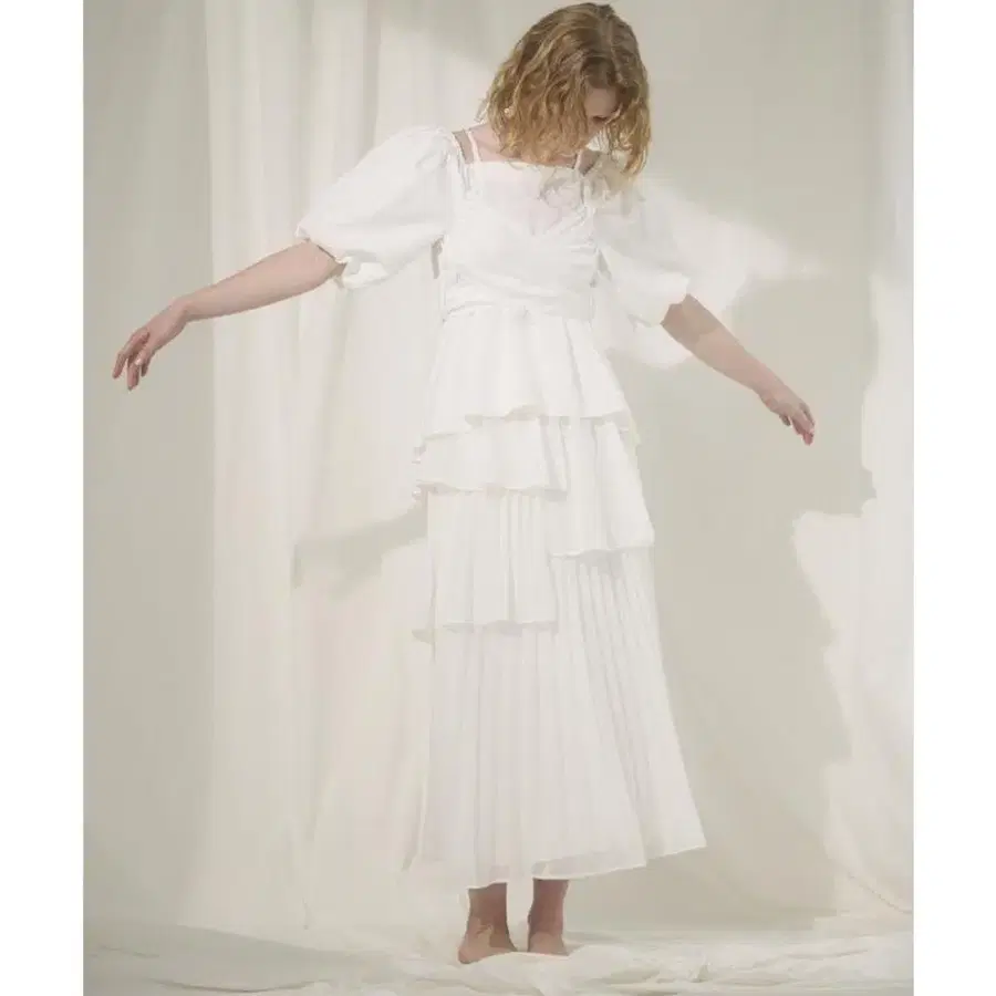 And Couture의 플리츠 이레헴 티어드 스커트입니다. 착용할 기회가 없어 한 번도 착용하지 않은 미사용 새상품입니다. 흔들림과 플리츠가 매우 아름답습니다 ✨ [Design/Styling] 입체감 있는 티어드 디자인과 섬세한 플리츠가 페미닌한 무드를 연출하는 아이템입니다. 단차를 둔 절개와 랜덤으로 흔들리는 이레헴 라인이 깊이감 있는 실루엣을 만들며, 움직일 때마다 가벼운 뉘앙스가 감돕니다. 은은하게 시어하고 가벼운 쉬폰 소재가 스타일에 내추럴함과 투명감을 더합니다. 허리는 앞에서 보면 깔끔한 플랫 사양이지만, 백 셔링 x 레이스업으로 뒷모습까지 여성스러운 악센트를 더했습니다. 사이드 지퍼 부착으로 입고 벗기가 스마트한 것도 기쁜 포인트입니다. 동일 소재의 백리본 페플럼 블라우스와 함께 코디하면 특별한 느낌의 쿠튀르 라이크 셋업 스타일이 완성됩니다. 적당한 달콤함을 더한 스타일링을 즐길 수 있는, 존재감 넘치는 한 장입니다. [Fabric] 가볍게 흔들리는 드레이프성과 적당한 광택이 고급스러운 인상을 돋보이게 하는 겉감을 사용했습니다. 안감 부착으로 비침을 신경 쓰지 않고 착용할 수 있으며, 피부에 닿는 느낌도 부드럽고 쾌적합니다. [제품 치수] F: (00): 기장 92cm, 허리 66cm, 밑단 둘레 315cm [소재] 겉감: 폴리에스테르 100% 안감: 폴리에스테르 100%
