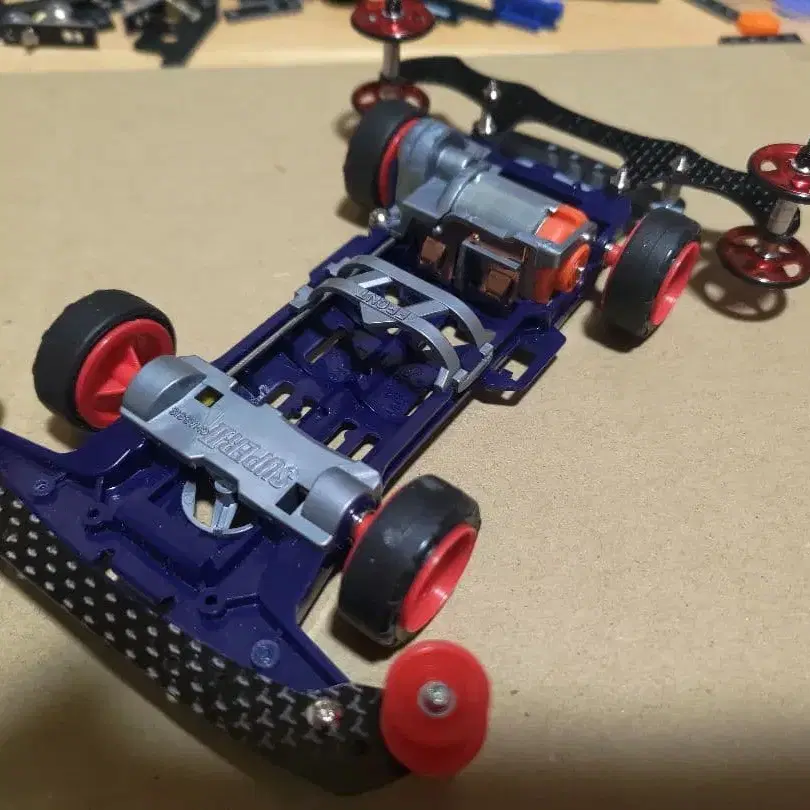 슈퍼 II 섀시 개조 완료품입니다. 프론트 = 카본, 2단 저마찰 플라스틱 롤러 리어 = 카본 플레이트, 알루미늄 베어링 롤러 (19mm) 모터 = 토크 튠 하부, 카운터 기어에 620 베어링 사용 묶음 구매 및 즉시 구매 대환영입니다. 질문이나 희망 금액이 있으시면 부담 없이 댓글 남겨주세요. 발송 방법은 유유 메루카리 택배이지만, 라쿠라쿠 메루카리 택배로 발송도 가능합니다. 그럴 경우 구매 전에 댓글 부탁드립니다. ( ⁠ ʘ ⁠ ᴗ ⁠ ʘ ⁠ * ⁠ )