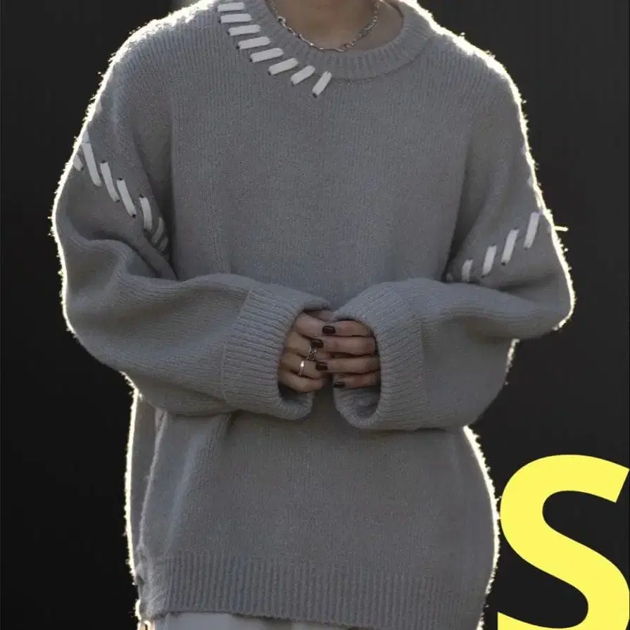 clel 핸드 스티치 사이드 레이스 니트 그레이 S