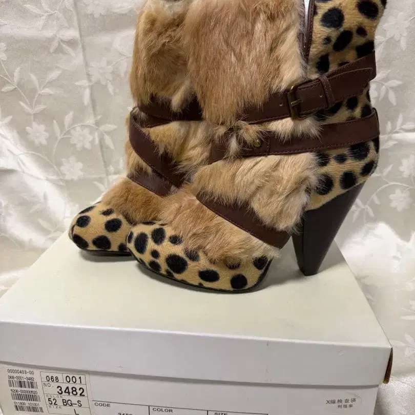 - 색상: 레오파드 무늬 - 소재: 퍼와 스웨이드 - 굽 높이: 하이힐 - 스타일: 부츠 사이즈는 L 사이즈 24cm 정도입니다.