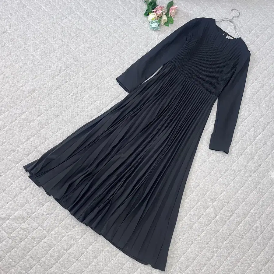 자라 [ XS ] 롱 원피스 긴팔 아코디언 플리츠 크루넥 발표회