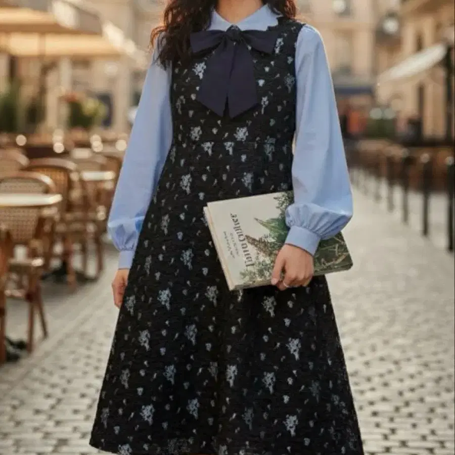 파란색 리본 포함 긴팔 셔츠와 블랙 컬러 꽃무늬 A라인 원피스 세트. 한국 브랜드 kuose 블라우스와 스커트 세트입니다. 블라우스는 S 사이즈, 원피스는 프리 사이즈 방문해 주셔서 감사합니다.