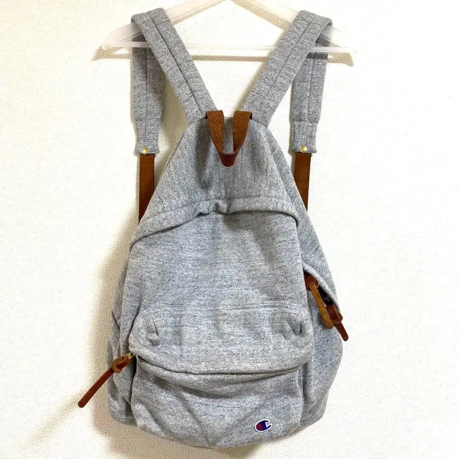 그레이 색상의 맨투맨 원단으로 만들어진 백팩입니다.